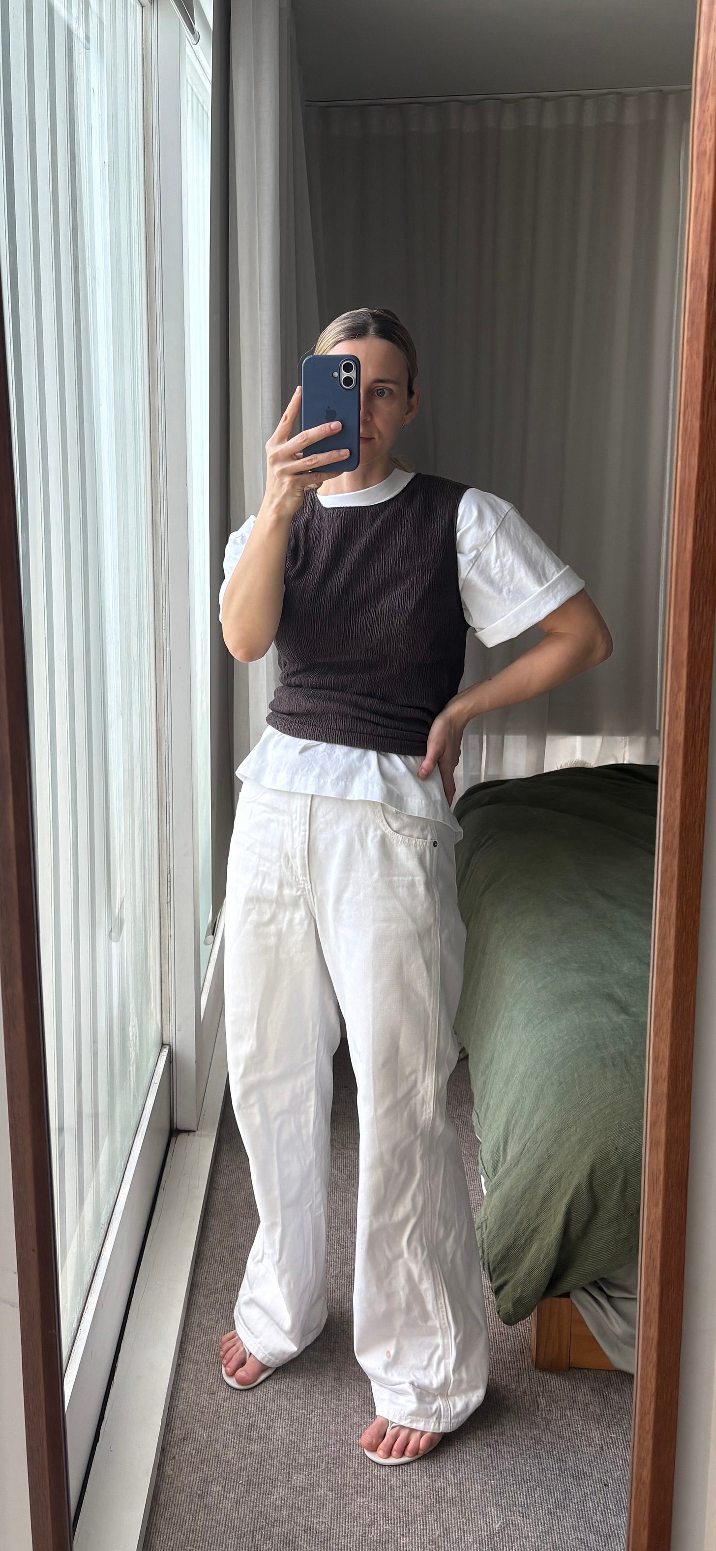 My jeans are from a Korean website, Musinsa. The ‘tuck’ jeans from Tibi have been on my wishlist for ages but I can’t swallow the price. Not to be defeated, I went on the hunt to find a pair that had similar measurments to the tucks. Musinsa has a really detailed size guide and specific measurements for each piece, so I was confident that this pair would work.