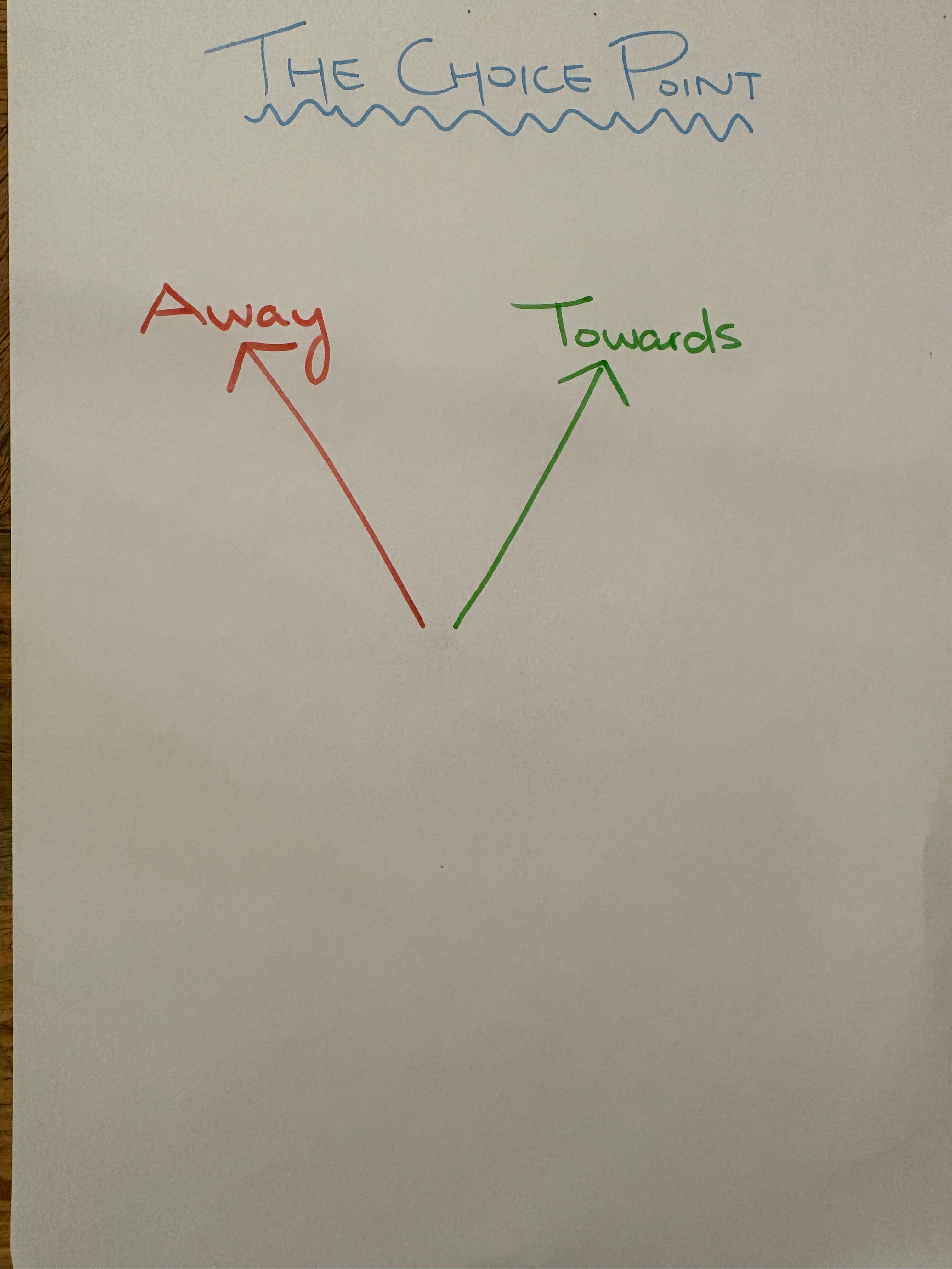 Getting clear on your values is also one of the best buffers against self-doubt and the tyranny of our thoughts. This can be illustrated through one of my favourite exercises in acceptance and commitment therapy, called the choice point.